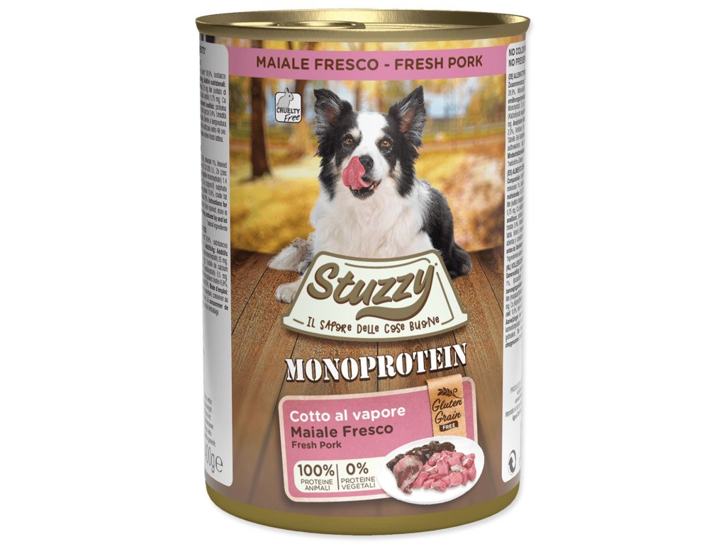 Konzerva s bravčovým mäsom. Kompletné krmivo pre dospelých psov.